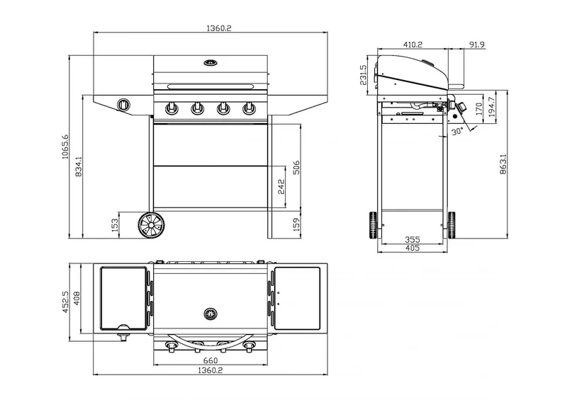 Nombre de brûleurs : 5 indépendants ( 4 + 1 feu latéral ) en inox