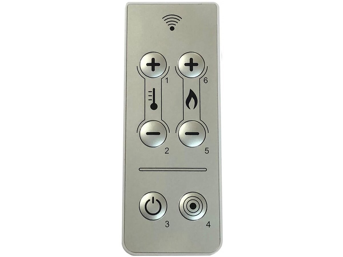 Télécommande permettant de piloter le poêle à distance : l’allumer ou l’éteindre, régler la puissance ou la température ambiante en mode manuel.